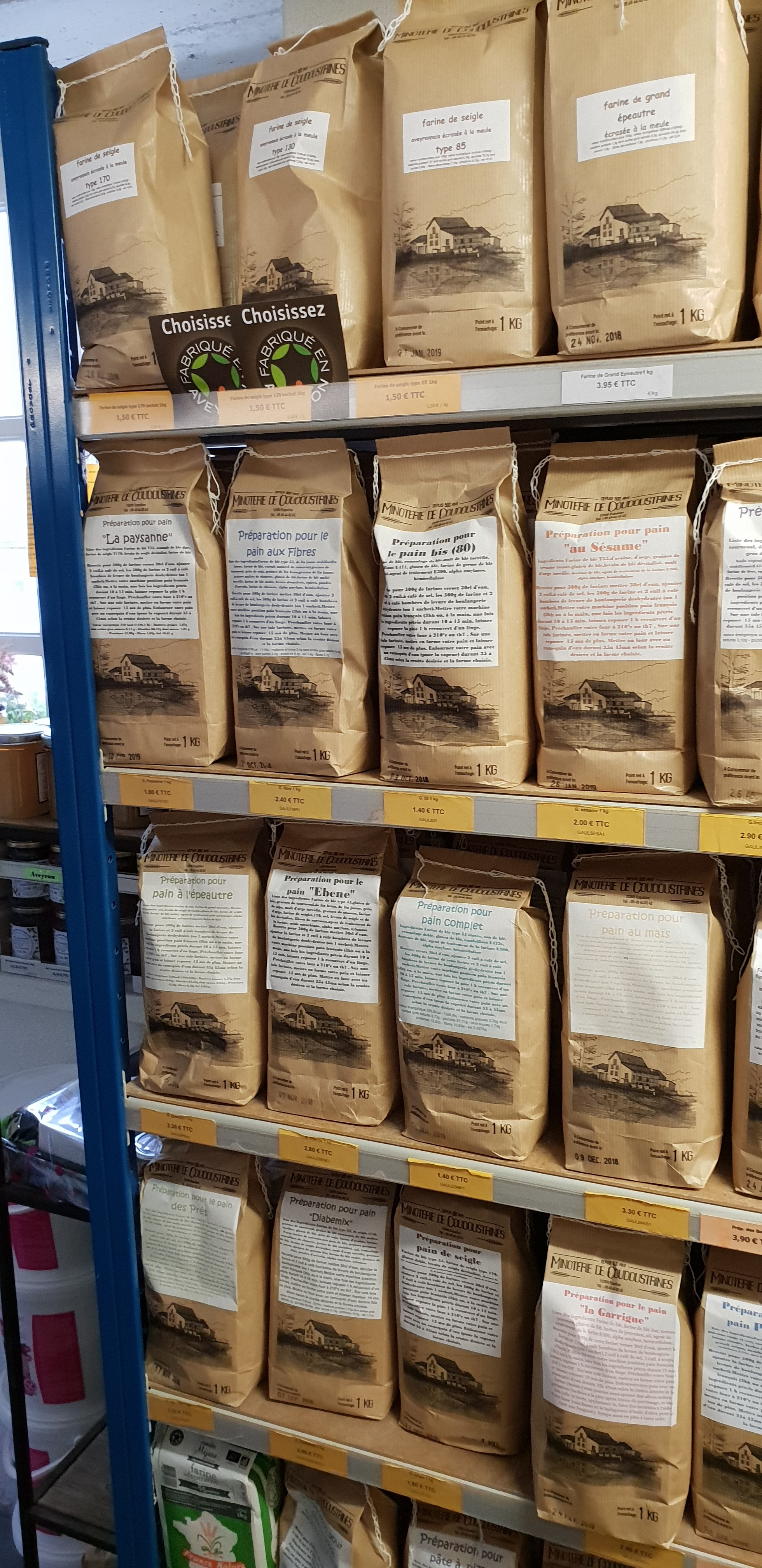 Posté le 12/08/2020 à 15:21"Magasin avec pleins de produits de différentes régions, avec bien sûr la farine de la minoterie adjacente. Très bon accueil."